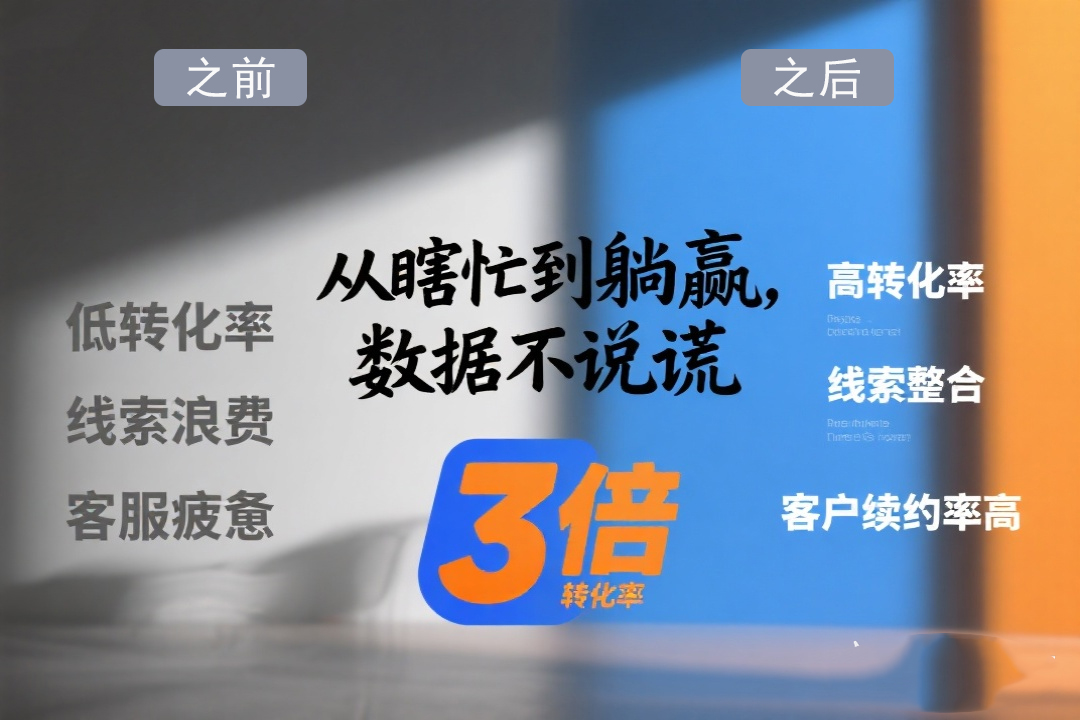 线索再也不浪费:所有渠道线索都能接住,整合率从30%到100%,高意向线索每月从50条涨到180条