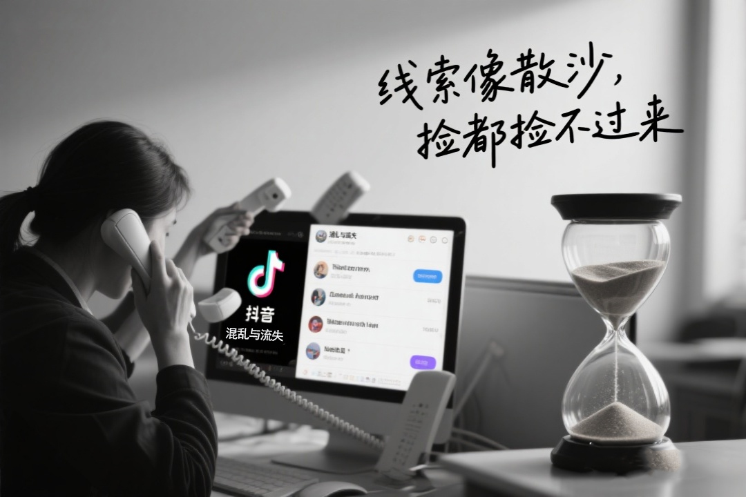 线索像“散沙”,捡都捡不过来:官网表单堆在后台没人及时看,抖音私信藏在几百条评论里,朋友圈广告引来的客户加了律师个人微信就“失联”——每月统计下来,近70%的线索要么没跟进,要么跟进时早被竞品截胡了。有次一个制造业老板从抖音私信问劳务纠纷,客服3天后才看到,人家早签了别家律所。